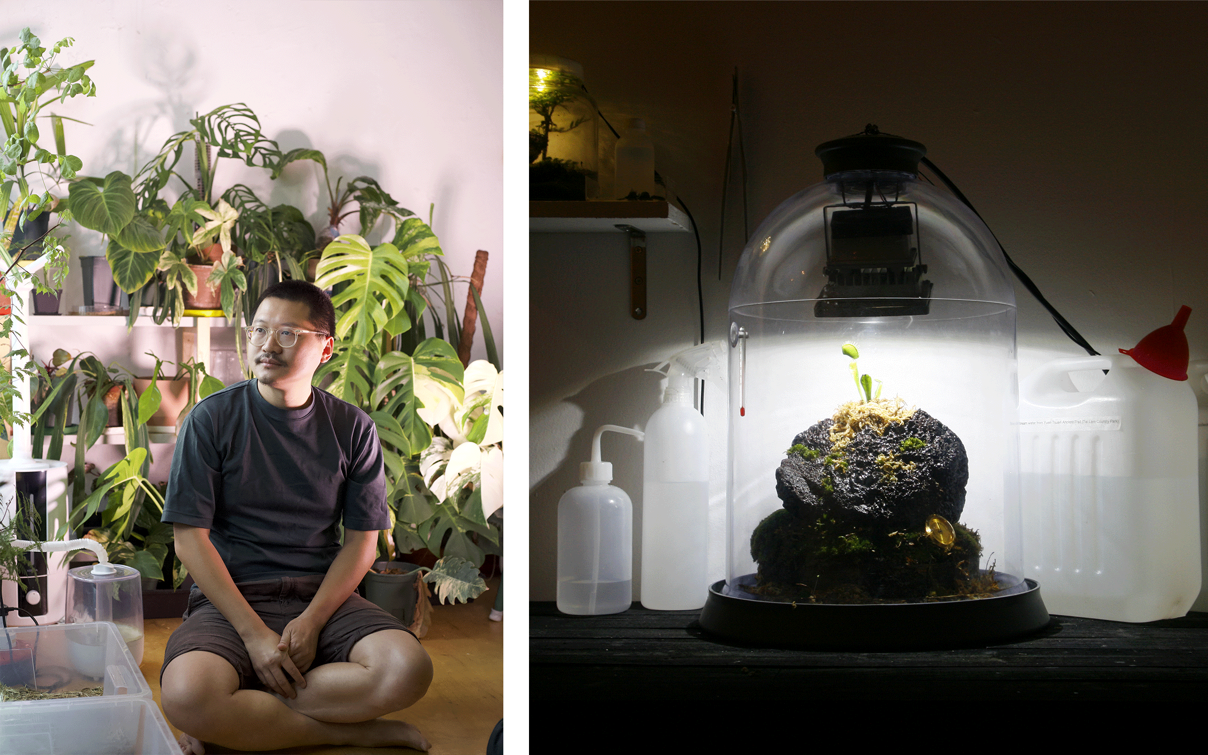 Trevor Yeung의 작업은 항상 통제와 식물에 관한 것이라고 그는 말한다. 자신을 원예학자라고 소개하는 작가는 이러한 고민을 어렸을 때 숨겨왔던 비밀 어항과, 나중에는 학생 기숙사에서 애완동물을 키우는 것이 금지되었기 때문에 대학에서 키웠던 식충 식물과 연결한다. 영은 야자나무, 작은 나무, 관목으로 가득한 홍콩 작업실에서 '생명을 유지하는 데 적합한 조건을 제공하는 것이 얼마나 중요한지 배웠습니다.'라고 회상하며, '이 힘을 인식하는 것이 나를 형성하기 시작했다.'라고 말한다. 오늘은 트레버 영을 들여다 보기로 하자.