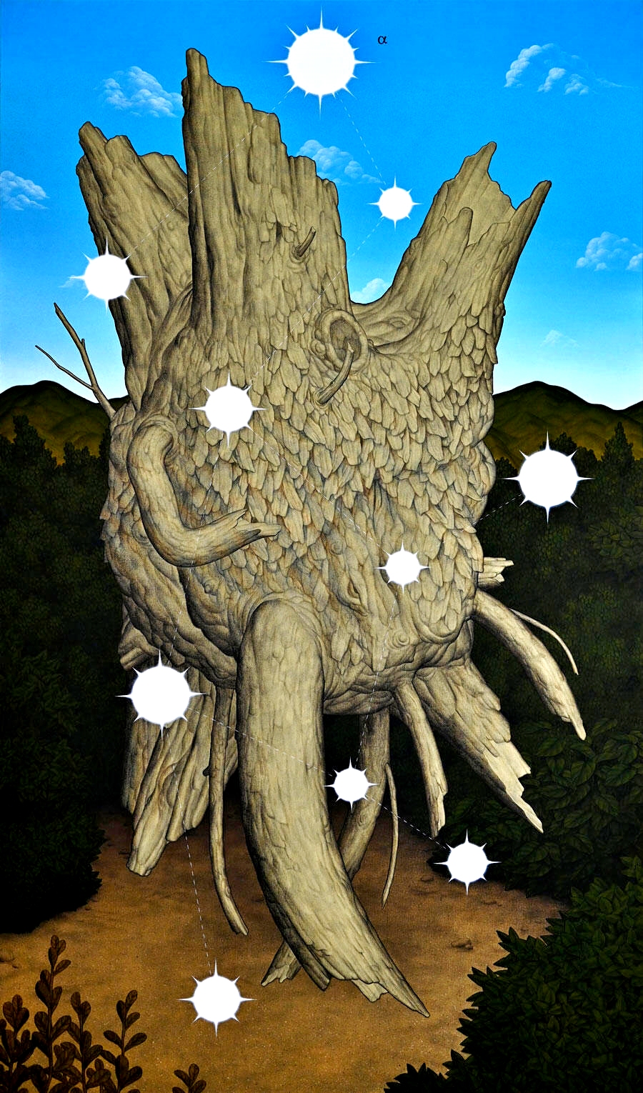 작가는 자연과 우주의 법칙에 불안하게 존재하는 균형 잡히고 긴장된 구도의 환영적일 정도로 평면적인 이미지를 만들어낸다. 동시에 그의 초기 작품에서 사용된 상징, 예를 들어 한국군에 대한 개인적인 경험과 계층적 도상학에서 비롯된 사용 설명서에 나오는 알파벳 문자 등을 계속 사용하여 그의 수수께끼 같은 그림들에 대한 초현실주의적인 이미지에 독특한 레이어를 추가한다.
