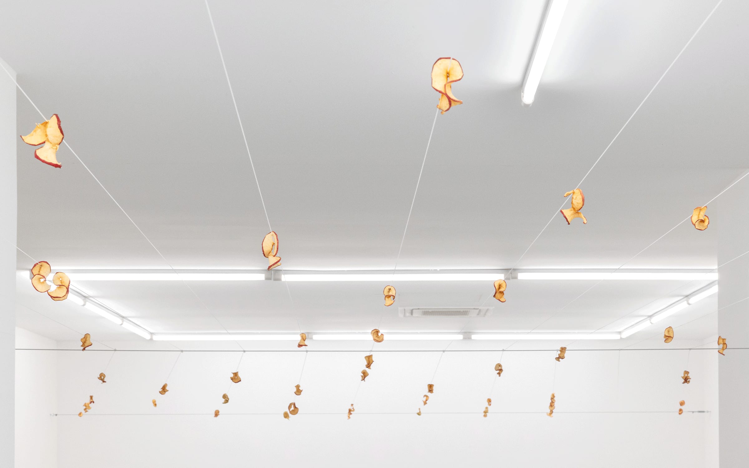 실험적인 전시 형식을 지향하는 의회의 'Interlude' 시리즈로 Navid Nuur는 예술의 개념과 그 가치와의 명확한 단절을 모색하는 흥미로운 프로젝트를 제안한다. 내용(content)과 맥락(context)을 합성한 합성어에서 영감을 얻은 제목의 미니멀리스트 설치 'The Tentext Theory'는 갤러리 천장에 매달린 전선에 매달린 말린 과일로 구성되어 있다. 작가는 아이러니하게도 '하나의 내용과 하나의 맥락이 만날 때' 촉발되는 문화적 에너지를 체험하기 위해 과일을 소비하도록 대중을 초대한다.